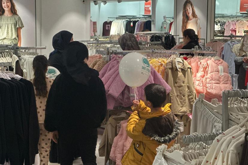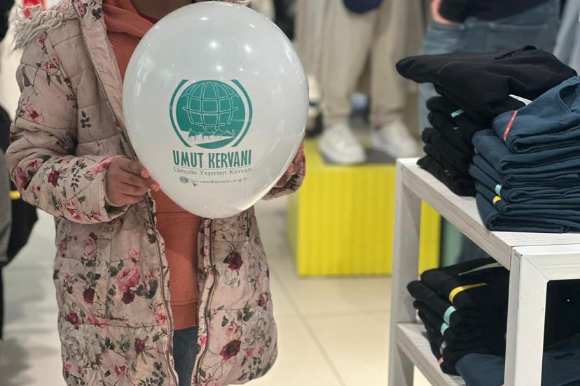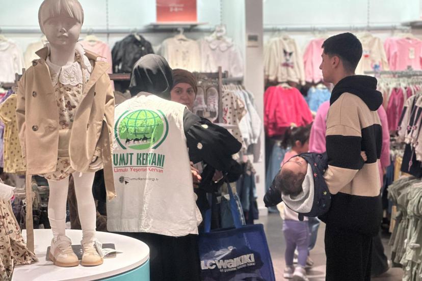 Kentte bulunan bir giyim mağazasında gönüllerinin istediği gibi alışverişlerini gerçekleştiren çocuklar seçtikleri elbiseleri Umut Kervanı aracılığıyla aldılar.