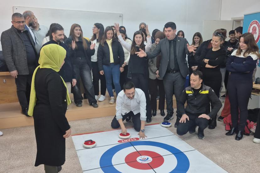 Süleyman Demirel Üniversitesi Eğirdir Sağlık Hizmetleri Meslek Yüksekokulu koordinesinde, Eğirdir Gençlik ve Spor Müdürlüğü iş birliğiyle Eğirdir SHMYO Fuaye Alanı'nda yapılan etkinlikte, buz üzerinde oynanan curling sporunun salon versiyonu olan floor curling öğrencilere uygulamalı olarak tanıtıldı. Etkinlik, Eğirdir Gençlik ve Spor Müdürü Özlem Kafadar Toğar ve ekibi tarafından gerçekleştirildi. Öğrencilerin farklı spor branşlarını tanıması, kampüs yaşamının sportif faaliyetlerle desteklenmesi ve gençlerin aktif yaşama teşvik edilmesi amacıyla düzenlenen etkinlikte öğrenciler hem eğlendi hem de yeni bir spor dalıyla tanışma fırsatı buldu.