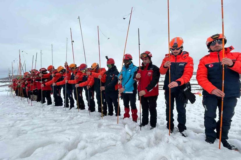 Tatbikat kapsamında ayrıca çığ altında iki kişinin kaldığı ihbarı üzerine ekipler harekete geçti. Bölge güvenlik şeridiyle kapatılırken, arama kurtarma ekipleri sondalama yöntemiyle çığ altında kalan yaralılara ulaştı. Kurtarılan yaralılar, olay yerinde hazır bekleyen UMKE ekiplerine teslim edilerek güvenli şekilde alandan tahliye edildi.