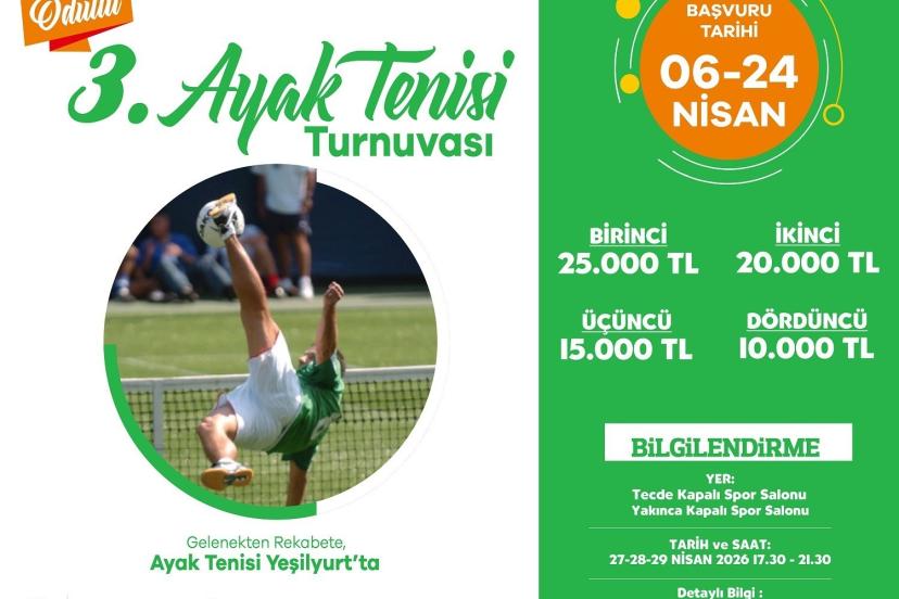 Yeşilyurt Belediyesi Gençlik ve Spor Hizmetleri Müdürlüğü, gençleri spora teşvik etmek, birlik ve dayanışma duygularını güçlendirmek amacıyla bu yıl üçüncüsünü düzenleyeceği Ödüllü 3.Ayak Tenisi Turnuvası için hazırlıklarını tamamladı. Sporun rekabetçi ruhunu dostlukla buluşturacak organizasyon, Yeşilyurt’ta büyük bir heyecana sahne olacak.