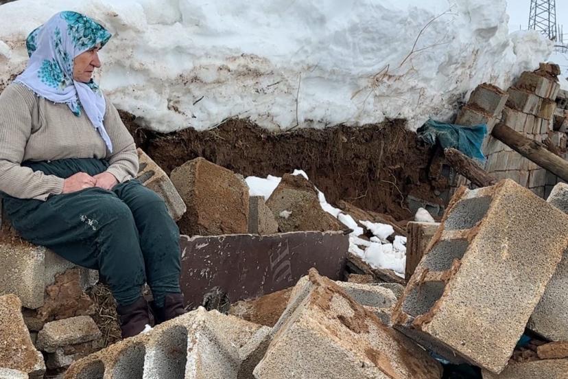 "Eşim yok, çocuklarım yanımda değil. Burada bir başıma, şu koyunlarımın yüzüyle ayakta duruyordum. Tek geçim kaynağım bu ahırdı, o da üzerimize yıkıldı. Şimdi bu karda kışta ben ne yaparım? Yardım eli bekliyorum."