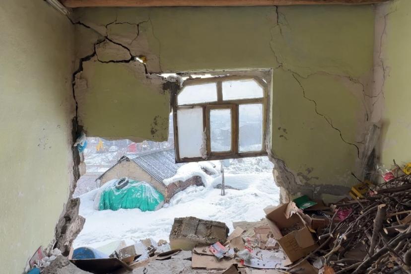Yoğun kar yağışının etkili olduğu Hakkari’nin Yüksekova ilçesinde bir evin duvarı çöktü. Uykusunda yakalandığı felaketi deprem zannederek büyük korku yaşayan Pirüze Bala, kış ortasında evsiz kaldı.