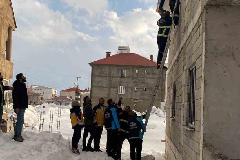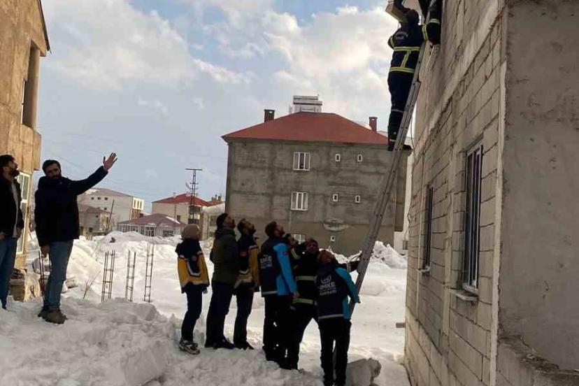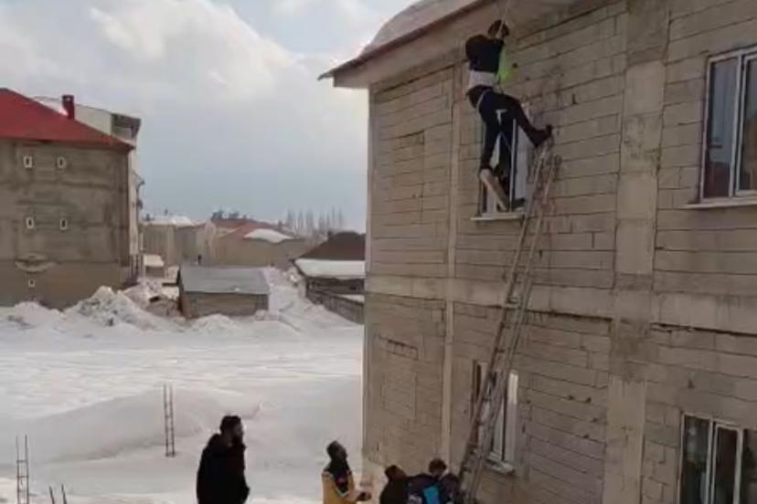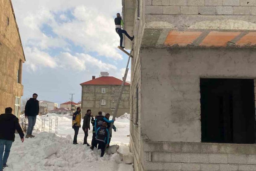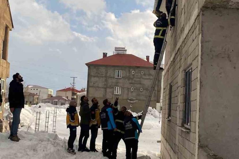 Edinilen bilgiye göre, Cumhuriyet Mahallesi’nde akşam saatlerinde 2 katlı binasının çatısında biriken karları temizlemek isteyen M.S.Ö., dengesini kaybederek kaydı. Tedbir amaçlı beline bağladığı halatın takılmasıyla havada asılı kalan vatandaşı görenler, durumu yetkililere bildirdi. İhbar üzerine bölgeye Yüksekova Belediyesi İtfaiye Müdürlüğü, 112 Acil Sağlık, UMKE ve polis ekipleri sevk edildi. İtfaiye ekiplerinin merdivenli araçla gerçekleştirdiği titiz operasyonla mahsur kaldığı yerden indirilen M.S.Ö.’nün yapılan kontrolde sağlık durumunun iyi olduğu belirlendi.